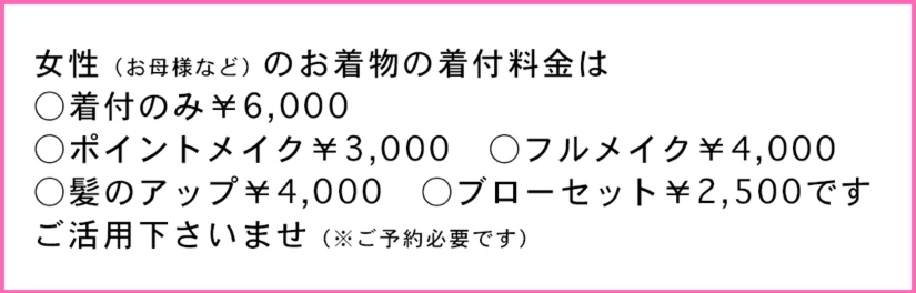 お衣装をお持ちでないお客様はご参考にされてくださいませ。